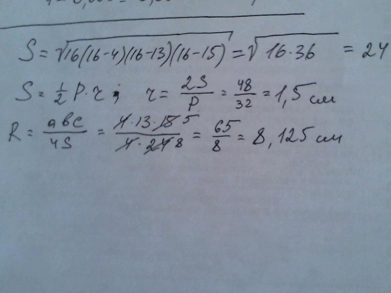 №4. Найти площадь, радиус вписанной и описанной окружности для треугольника со