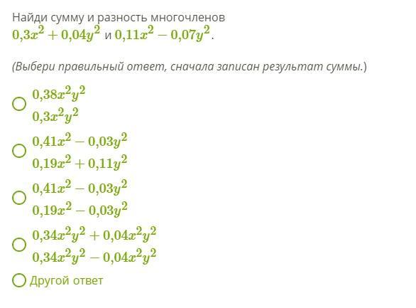0,3х²+0,04у²+0,11х²-0,07у²=0,41х²-0,03у² сумма