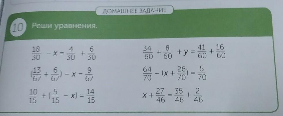 18/30-x=4/30+6/30; потом переносим x и получаем