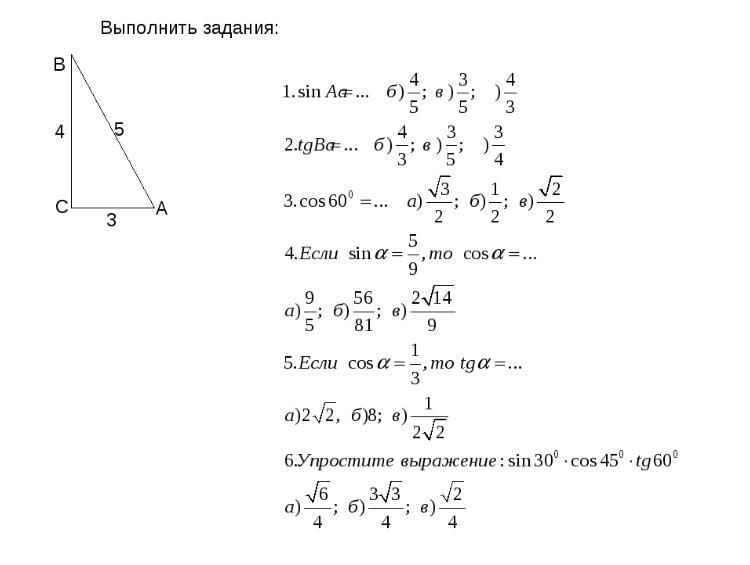 6) 1/2*(√2/2)*√3=(√6)/4 Ответ а