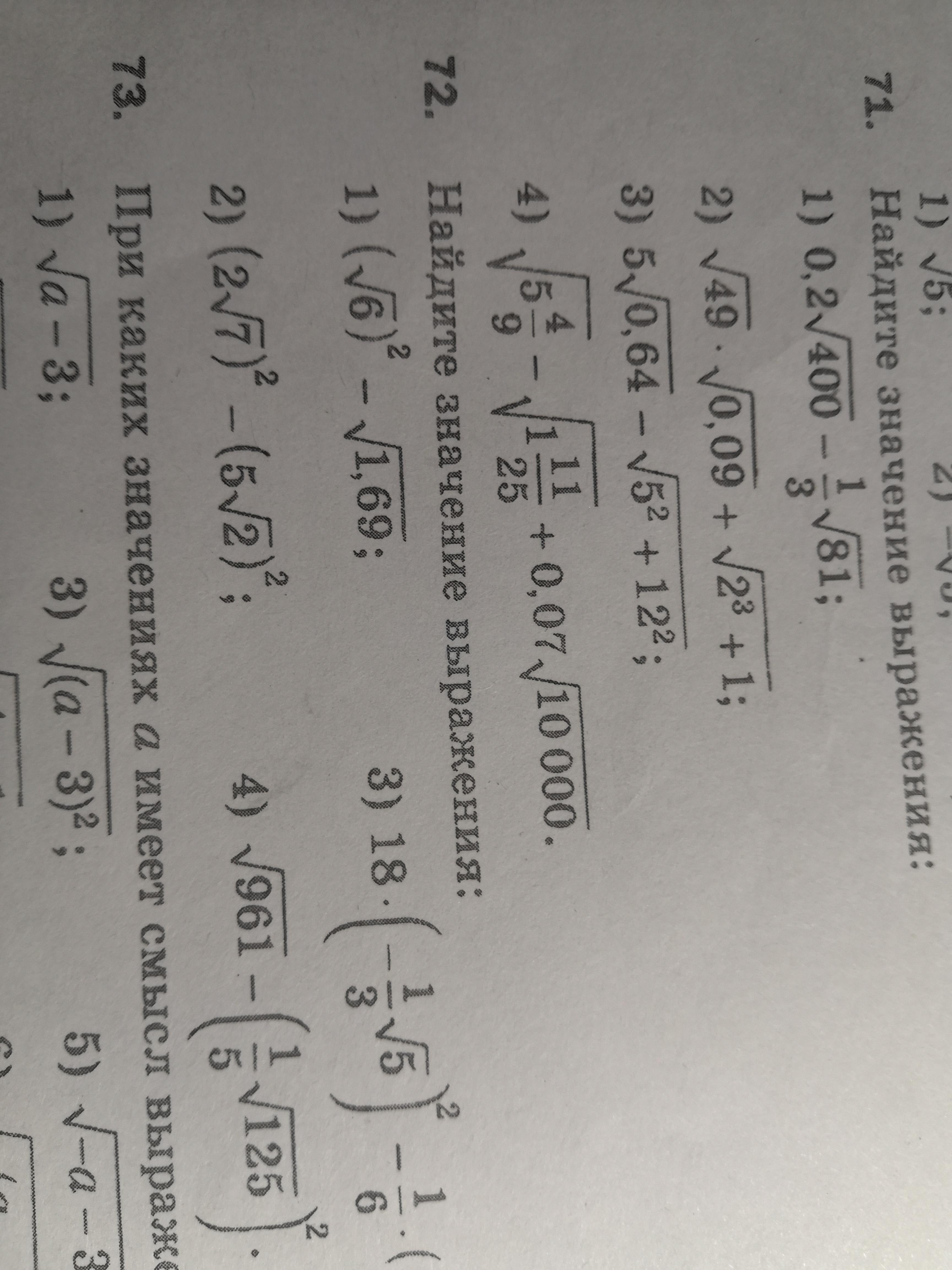 Корень 49/9 - корень 36/25 + 0,07*100 = 7/3-6/5+7 = 35-18+105/15 (делим все числа на 15) = 122/15 = 8(целых) 2/5(дробных) ИЛИ 8,4