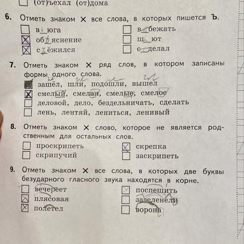 9 задание. Отметить знаком х все слова, в которых две буквоед безударного гласного звука находятся в корне