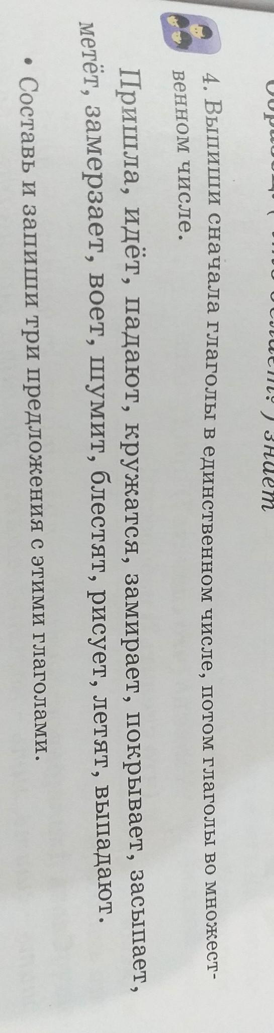 мж.ч Пришла□,идёте,падаете,кружит,замирают,покрываем,засыпаем,метём замерзаем,воют,шумите,блестят□,рисуем-рисуют,летим-летаем-летаете,выпадаем