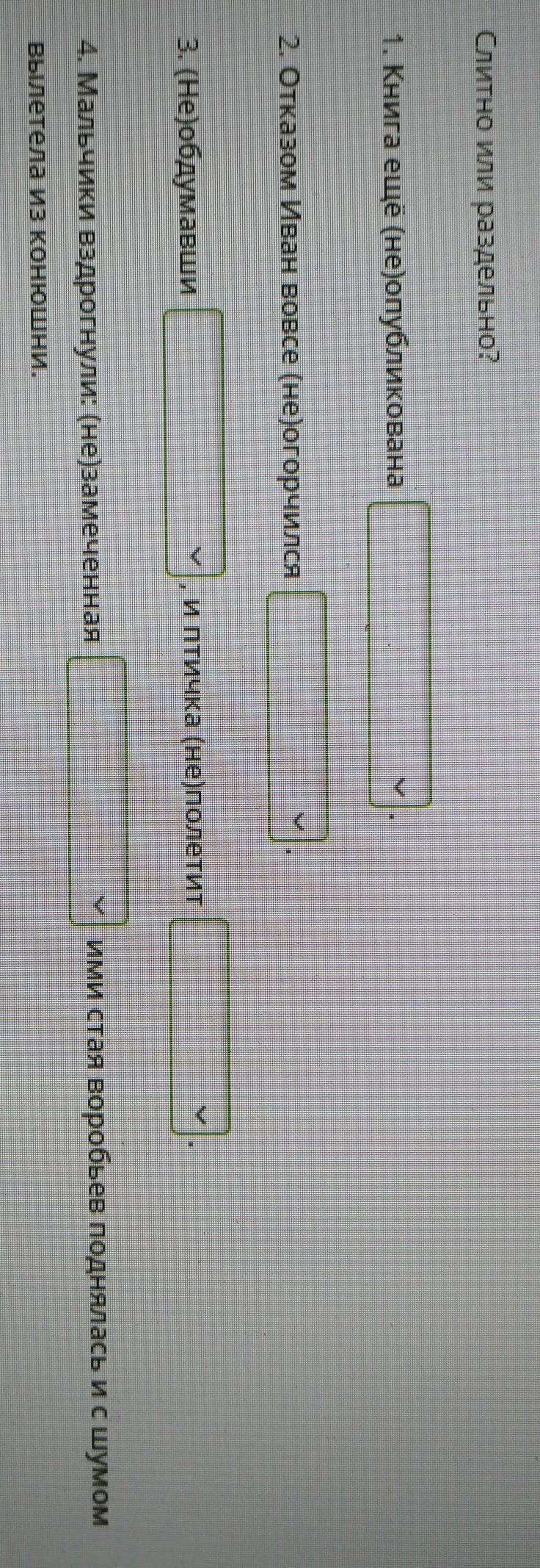 Ответ:1)слитно 2)раздельно 3)слитно/раздельно 4)слитно