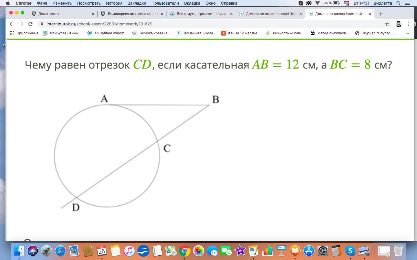 Если из точки, лежащей вне окружности, проведены касательная и секущая, то квадрат длины касательной равен произведению секущей на ее внешнюю часть:
