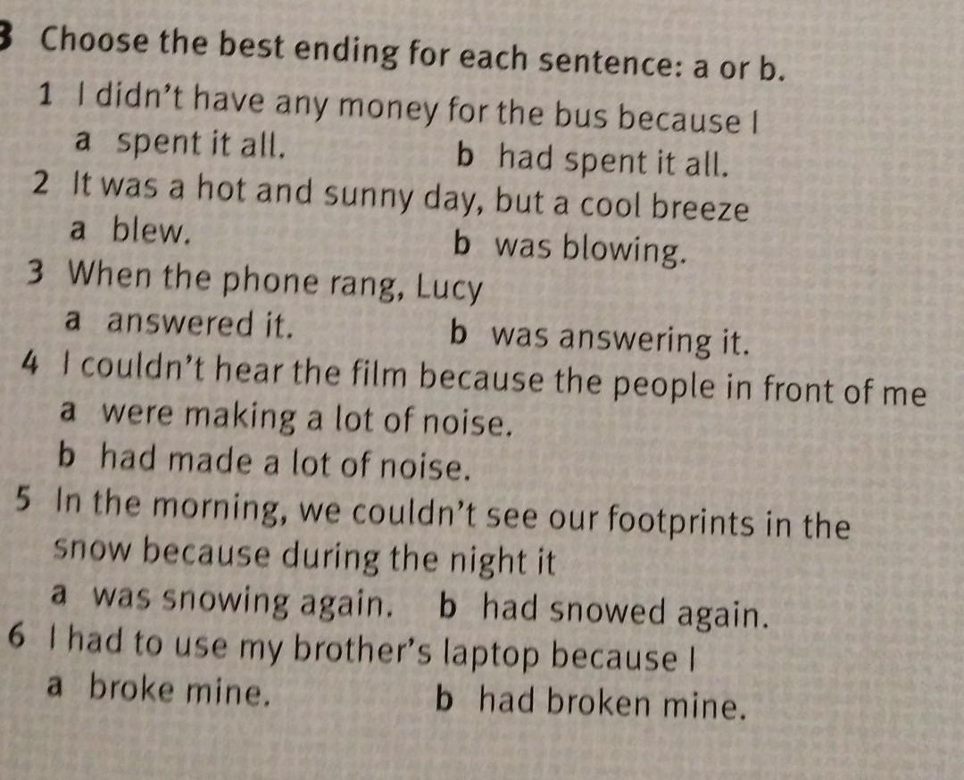 4 I couldn't hear the film because the people in front of me a were making a lot of noise.