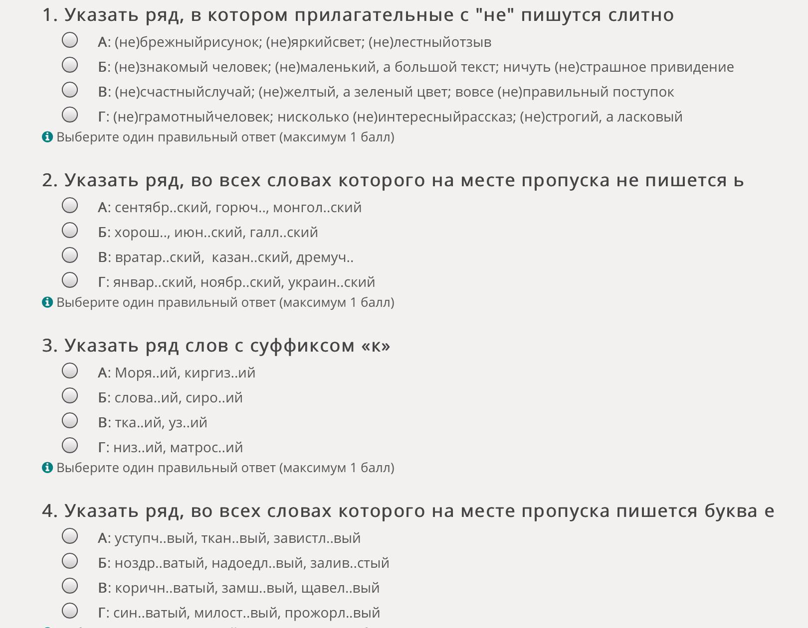Ответ: 1. А; 2. В; 3. Г; 4. В.