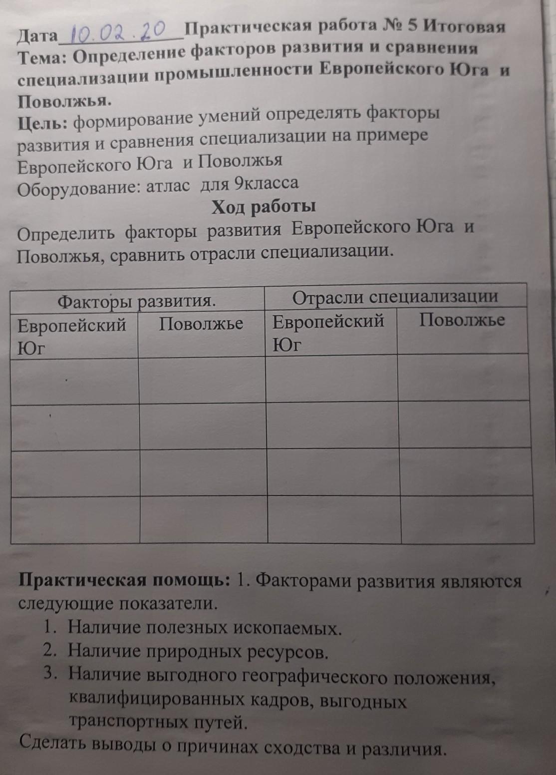 Практическая работа по географии 9 класс. Повольжье и Европейский Юг