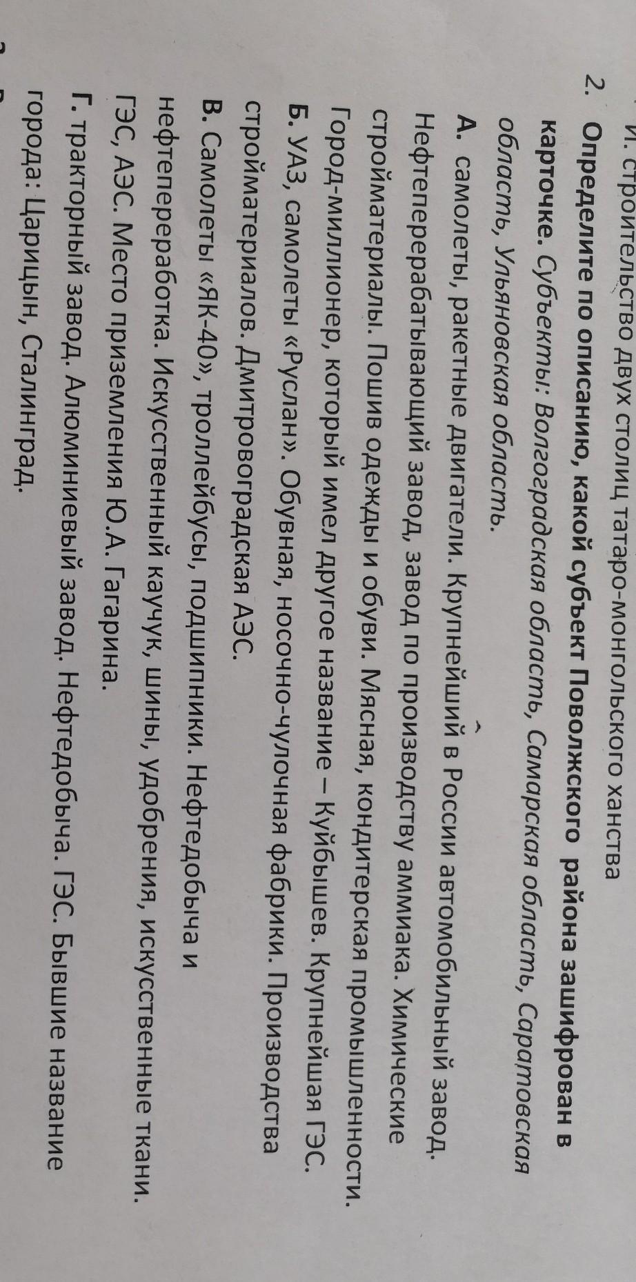 определите по описанию какой субъект Поволжского района зашифрован в карточке субъекты Волго