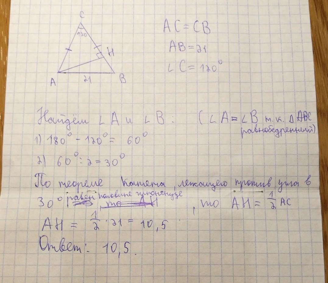 Дан треугольник ABC. Известно, что AC = BC, AB=21,