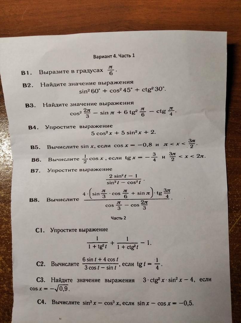 Синусы, косинусы, тангенсы и котангенсы из таблицы значений
