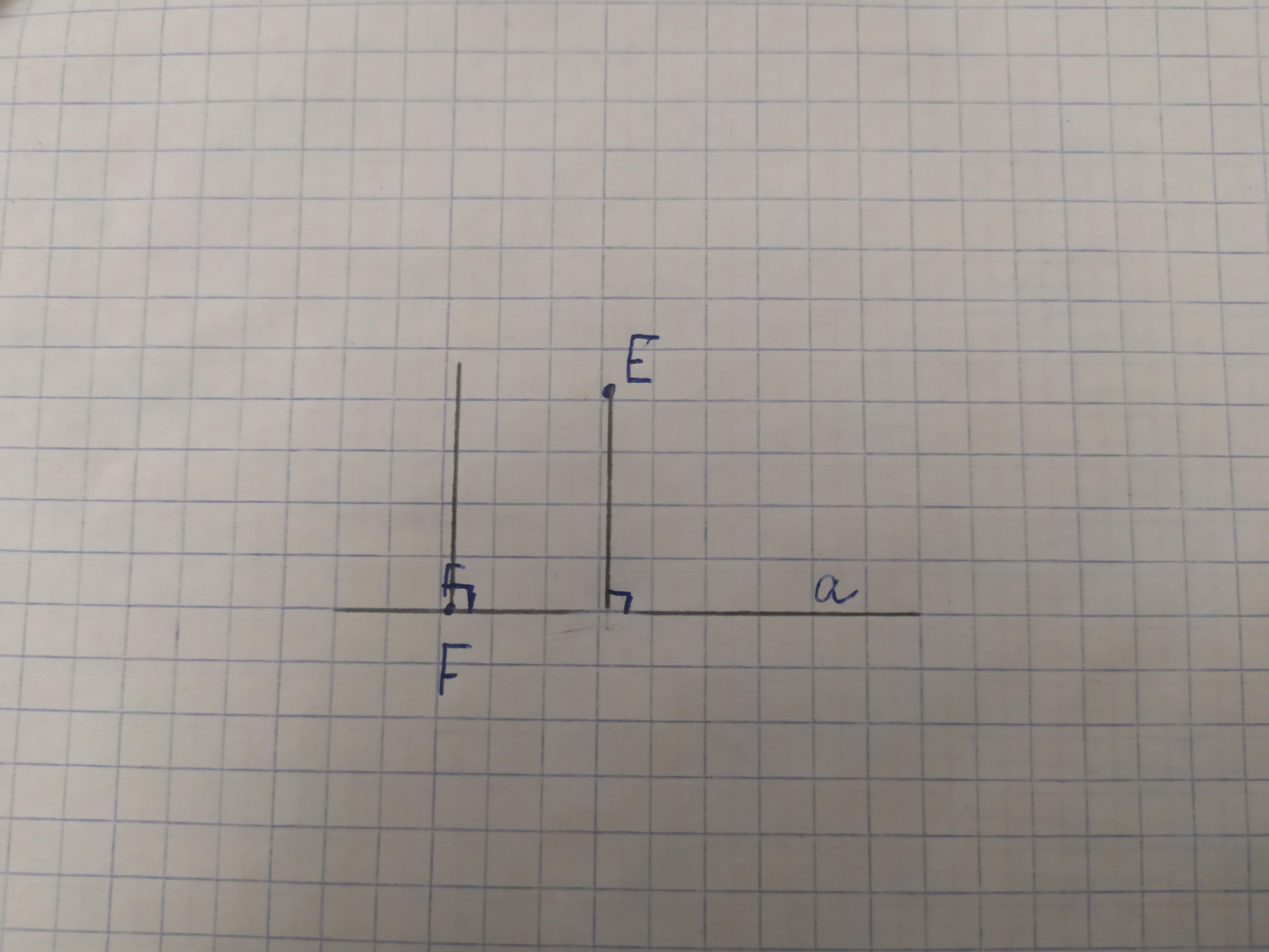 просто из точки F, потом из точки E. Можешь приложить уголок линейки, где квадратный уголок и по нему провести вверх прямую и квадратиком обозначь угол