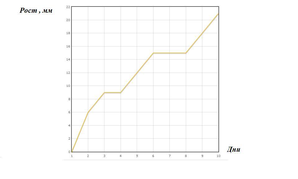 Рост, в мм 0; 6; 9; 9; 12; 15; 15; 15; 18; 21
