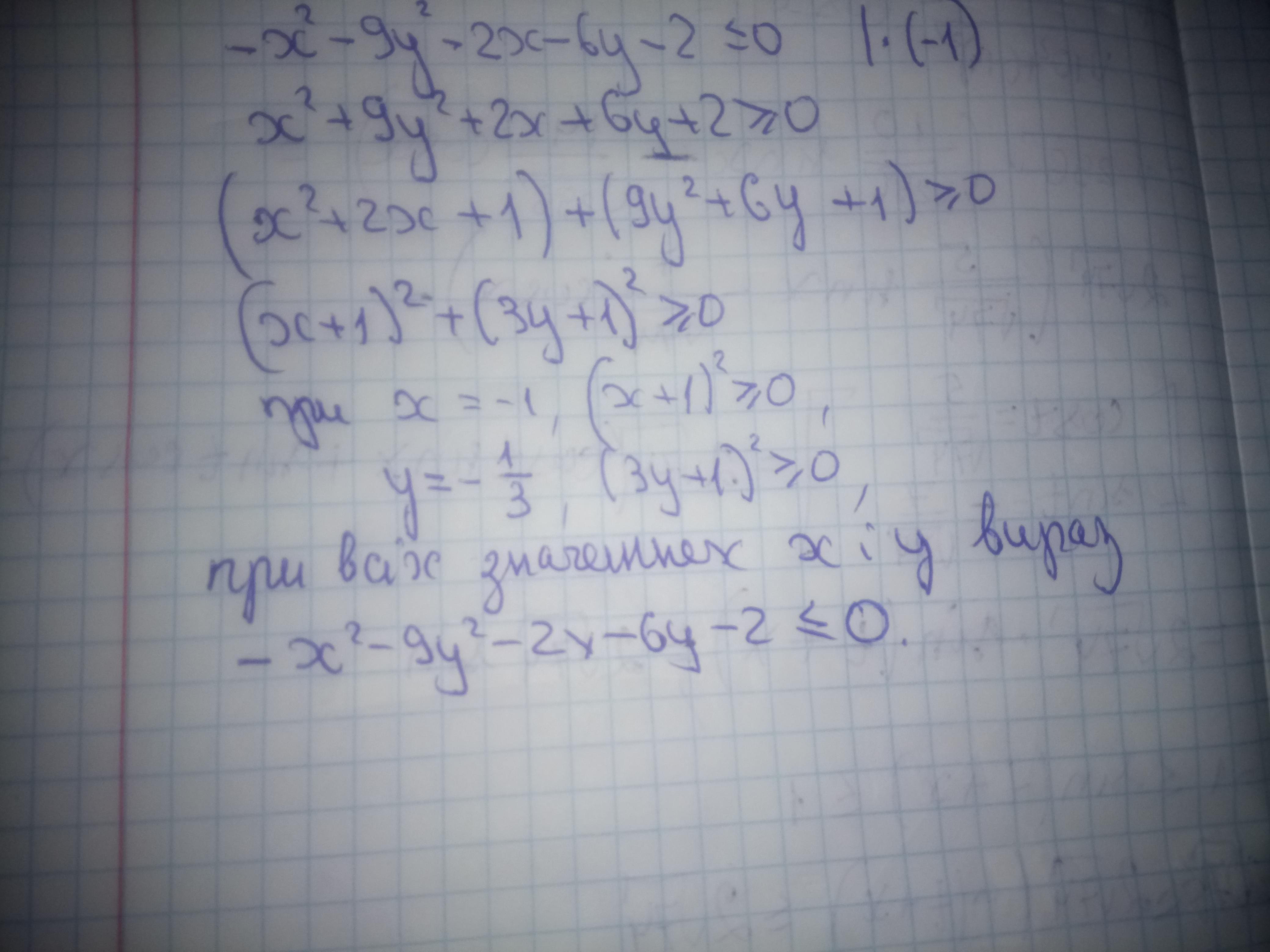 2) -x2 - 9у2- 2х-6у-2 ⩽ 0.