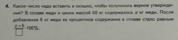 (x+6)/(60+6))=(x+6)/66-таким стало процентное содержание меди.