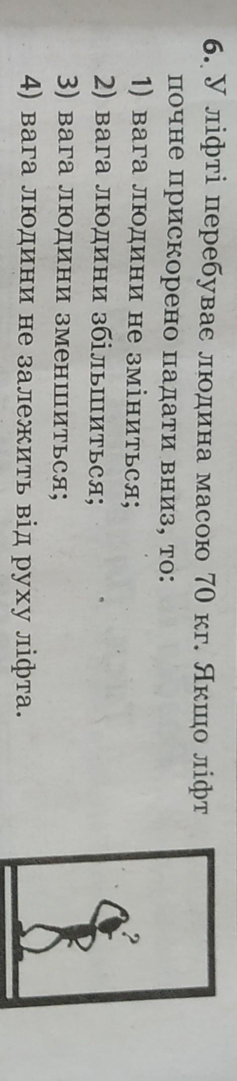 При наборе скорости лифтом, вектор ускорения "а" направлен вниз, Fтяж вниз, реакция опоры N вверх.