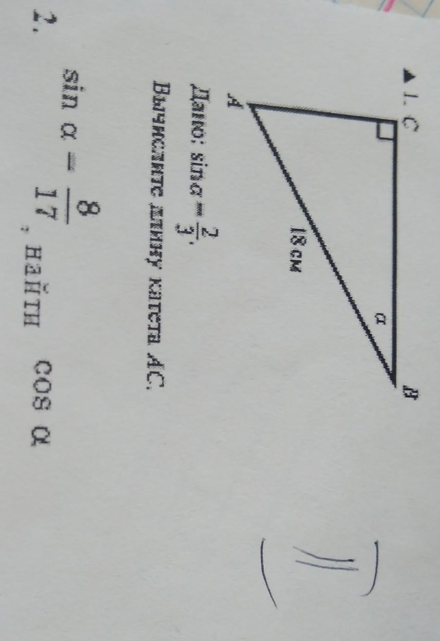 Отсюда AC=AB*sin α=18*2/3 = 12 см