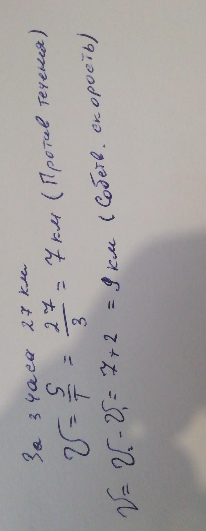 На моторной лодке геологи плыли против течения реки 3 ч и преодолели расстояние 27 км.Определите собственную скорость лодки,если скорость течения реки 2 км/ч.Помогите!Пожалуйста