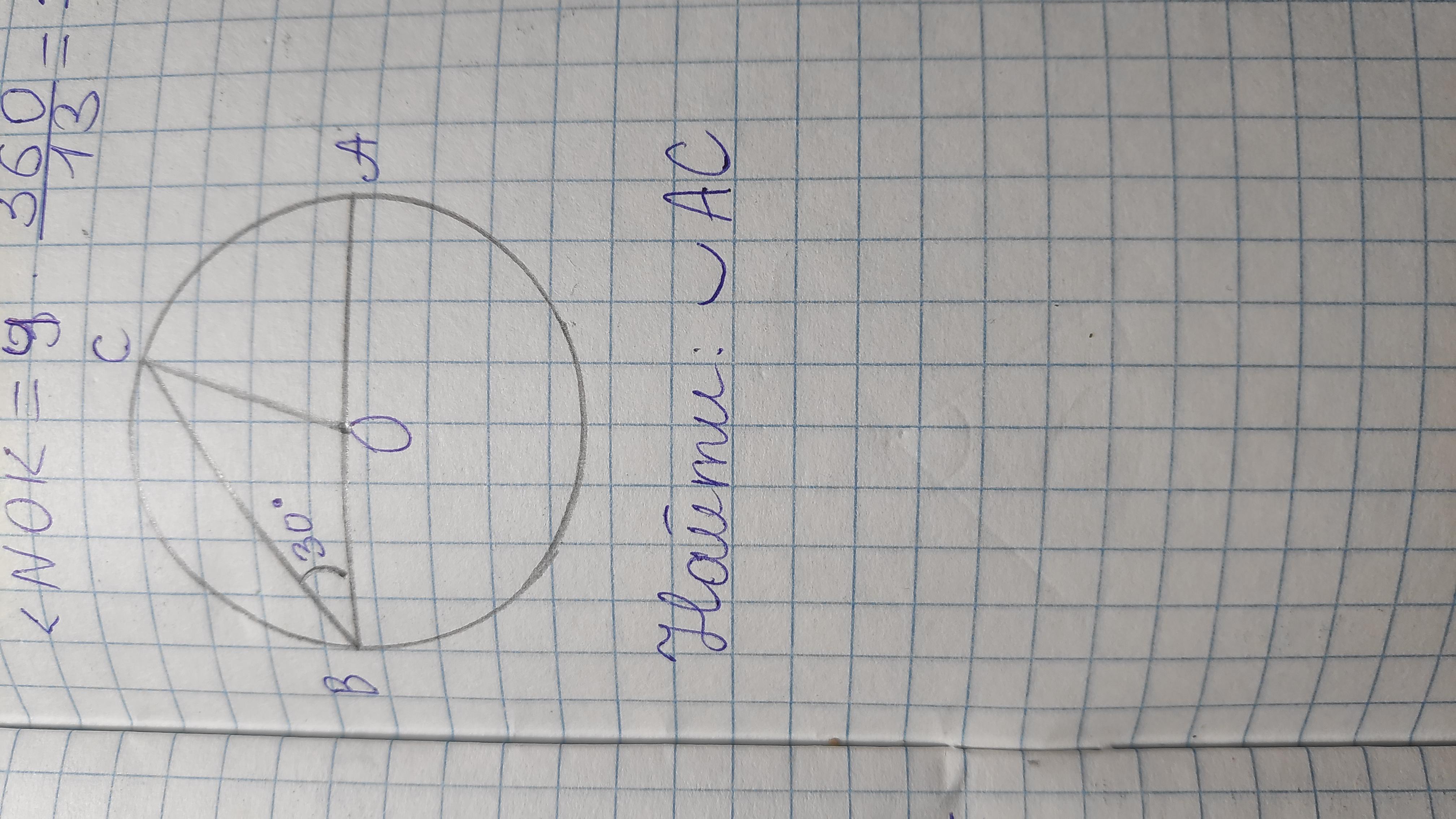 Дуга АС будет равна 60°, ведь так?(вписанный угол равен половине дуги, на которую опирается)