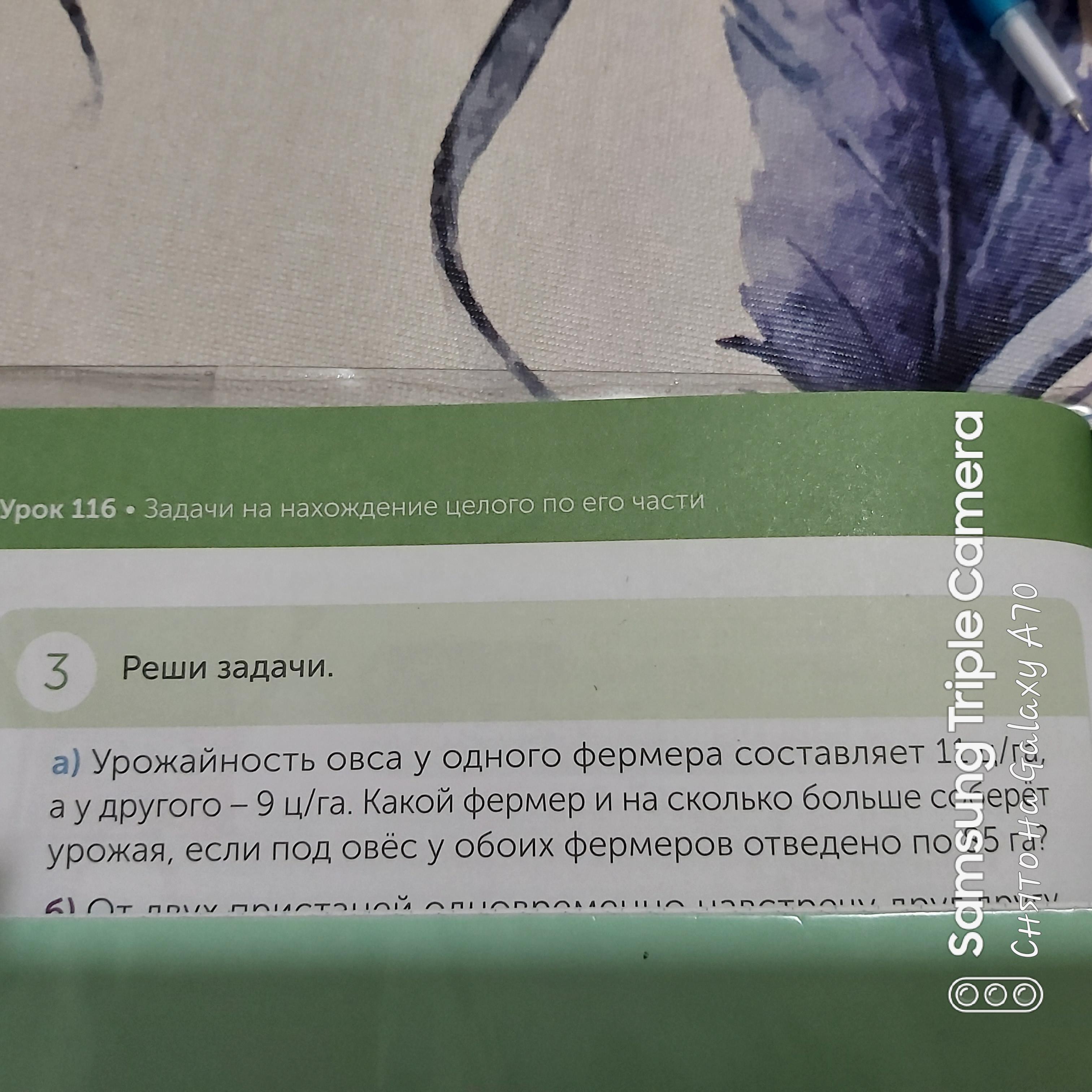 Урожайность овса одного фермера 11ц/га. А другог 9 ц/га. Какой фермер и на сколькобольше соберет урожая, если под овес у обоих фермеров отведено по 85 га