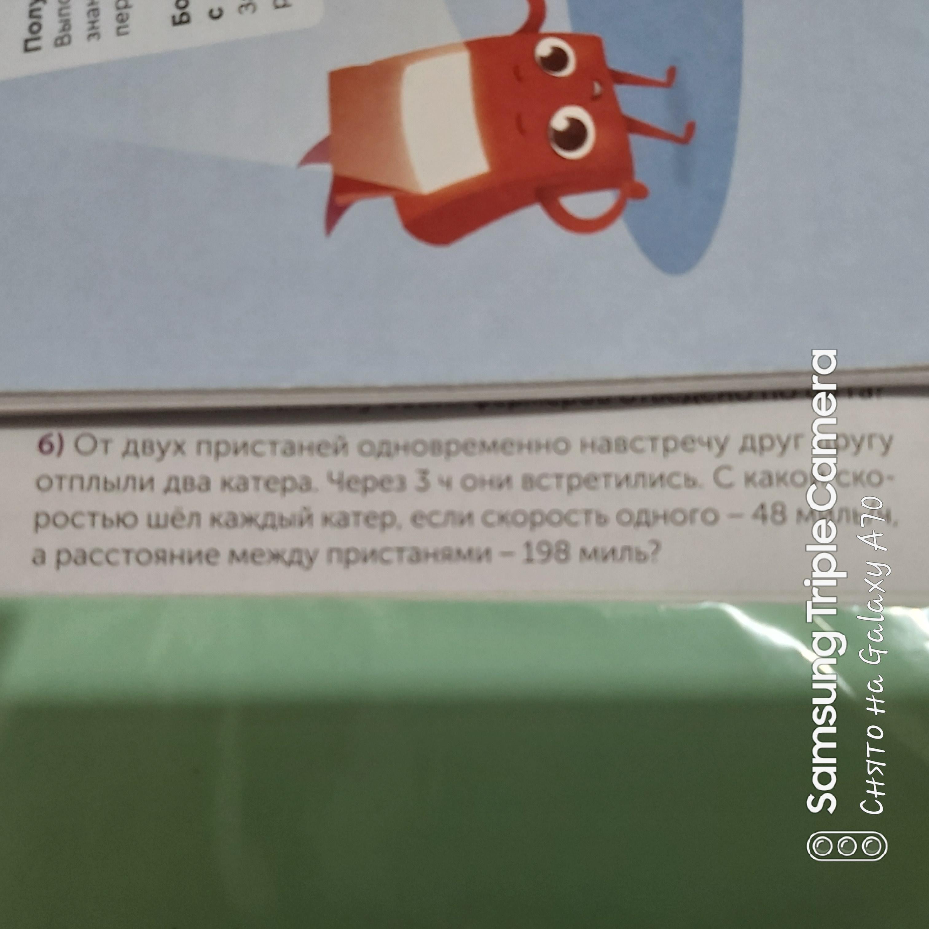 От двух пристаней навстречу друг другу отплыли два катера. Через 3 часа они встретились. С какой скоростью шел каждый катер, если ск одного 48 миль/час, а расс между ними пристанями 198 миль