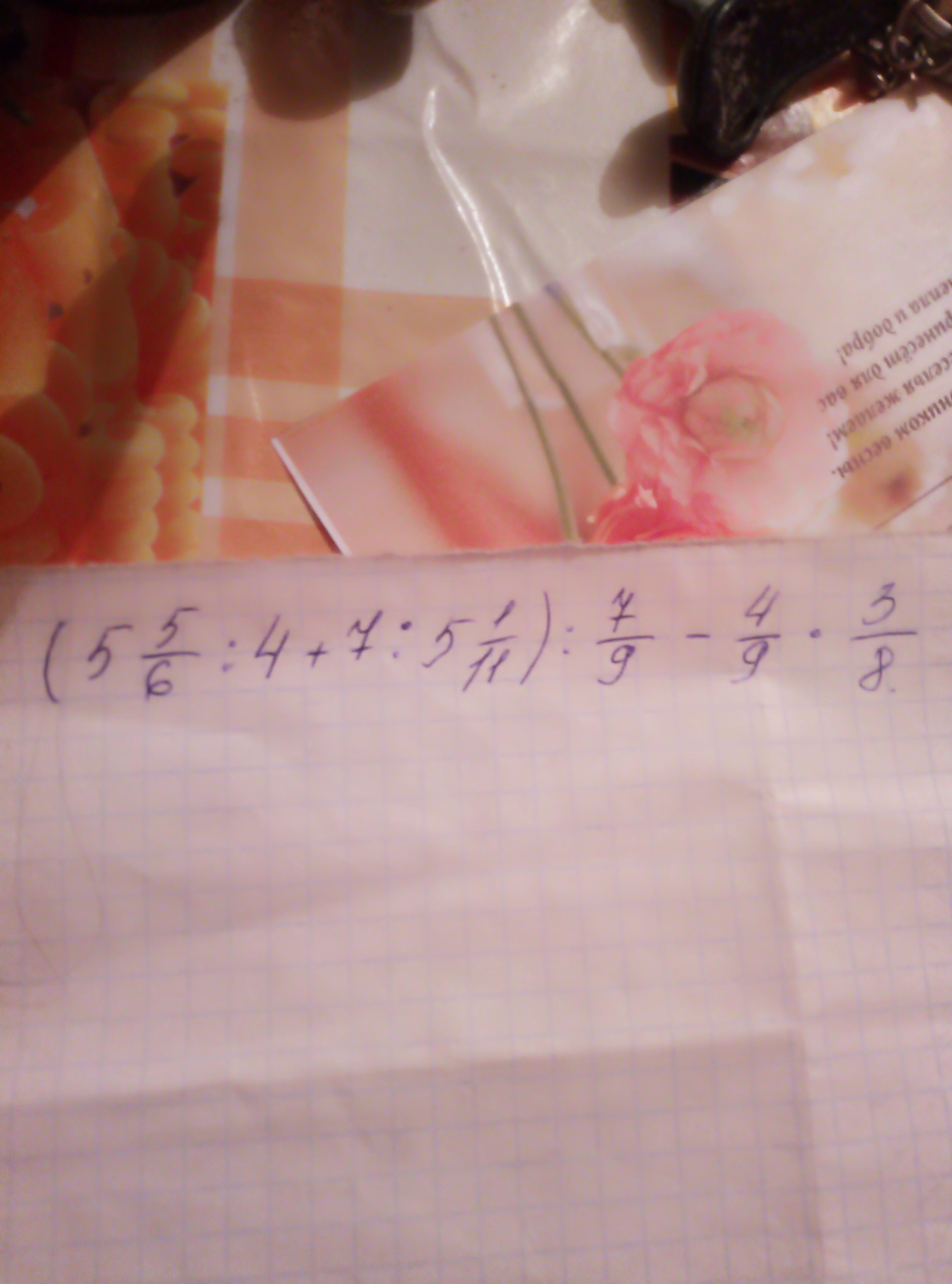 (5 5/6 : 4 + 7 : 5 1/11) : 7/9 - 4/9 · 3/8 = 3 10/21