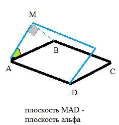 б) Покажите на рисунке линейный угол двугранного угла BADM, M принадлежит альфа.