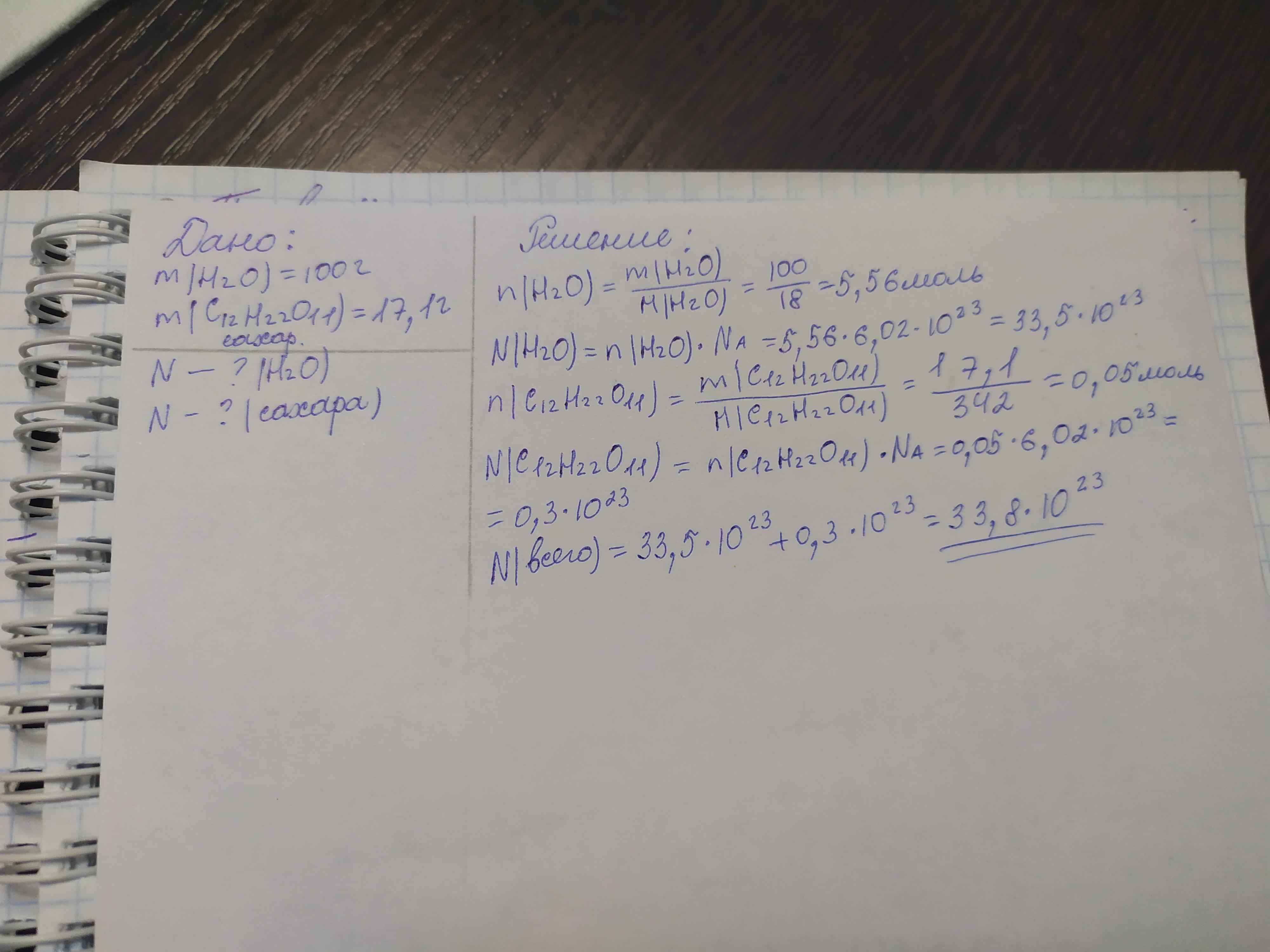 Приготовить раствор из 100 гр. воды и 17,1 гр. сахара. Сколько молекул находится в данном растворе?