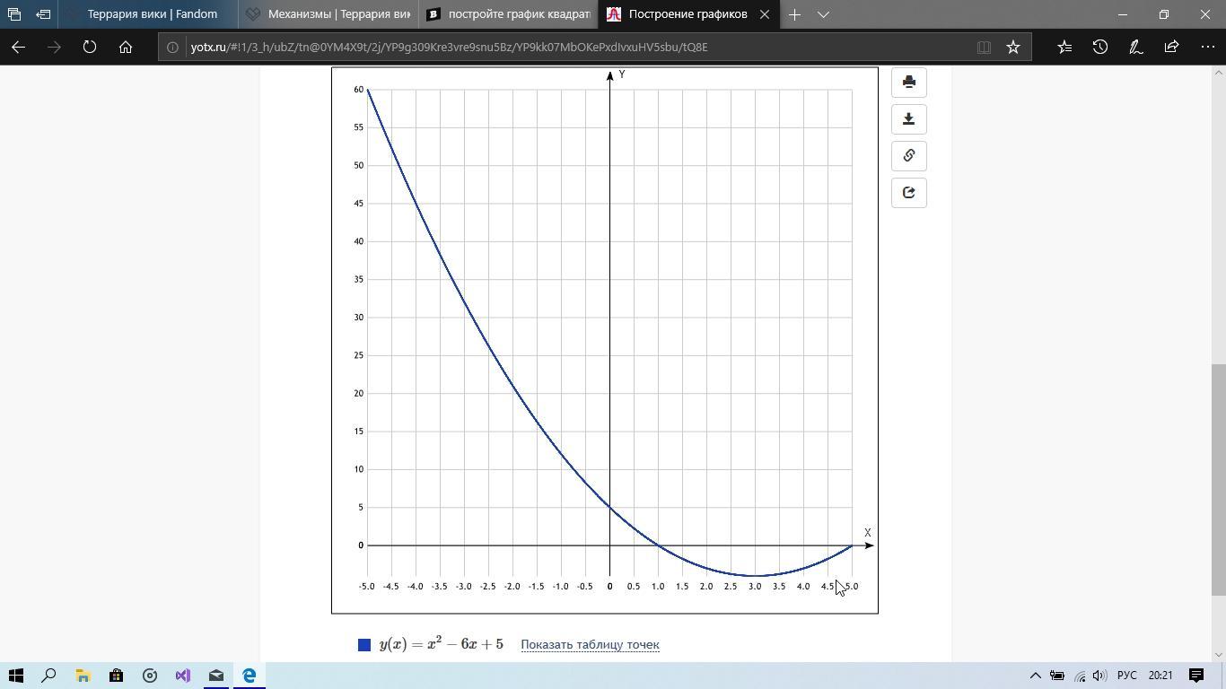 (0, 5), (1, 0), (2, -3), (3, -4), (4, -3), (5, 0)