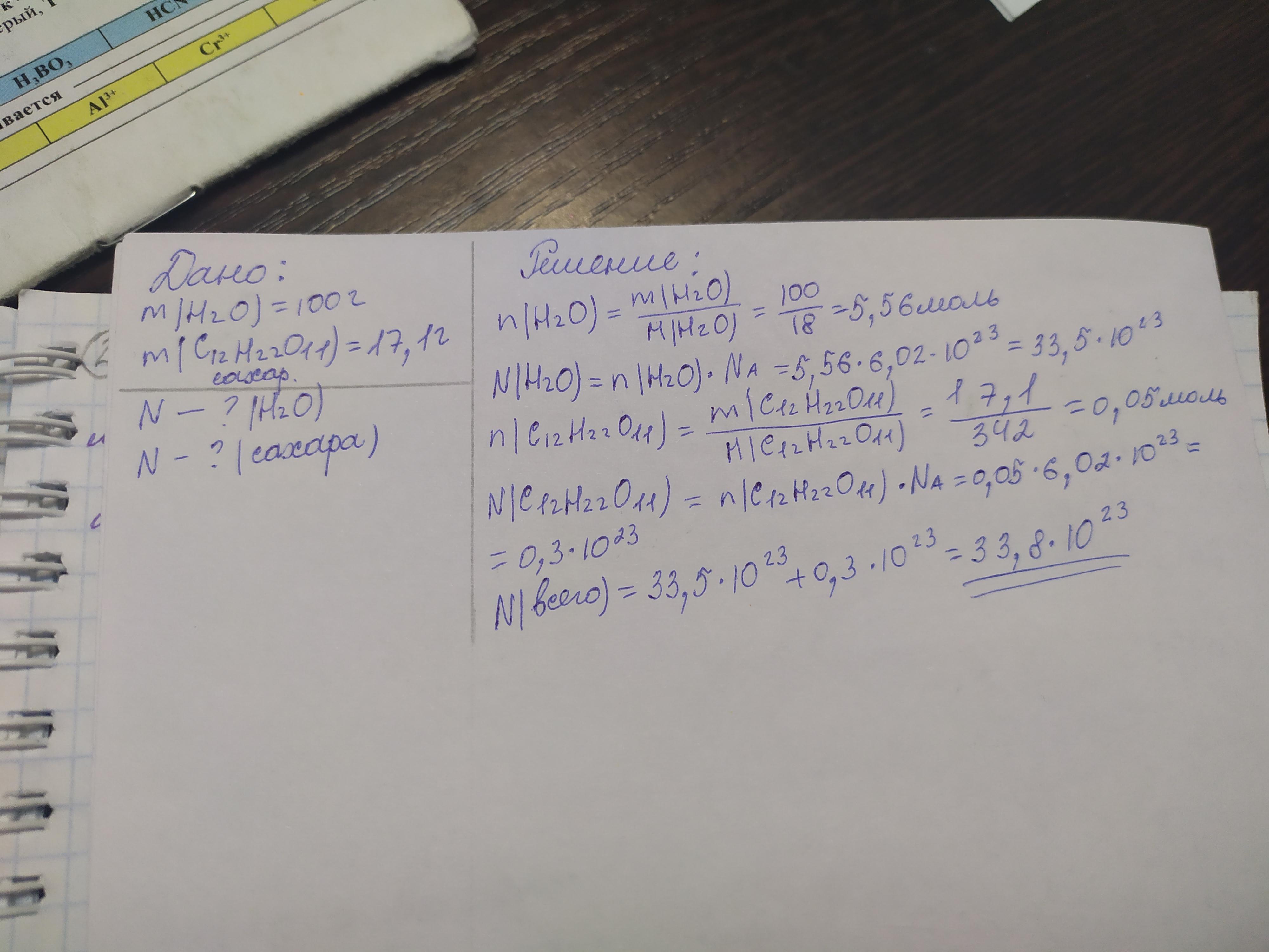 Приготовить раствор из 100 гр. воды и 17,1 гр. сахара. Сколько молекул находится в данном растворе?