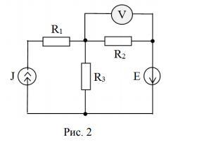 применить 1 и 2 законы Кирхгофа, при показания вольтметра=0 (см. рисунок/ схема простая, но не могу разобраться в применения 1 закона, когда есть источник тока и сила тока в одном узле, как это учитывается)