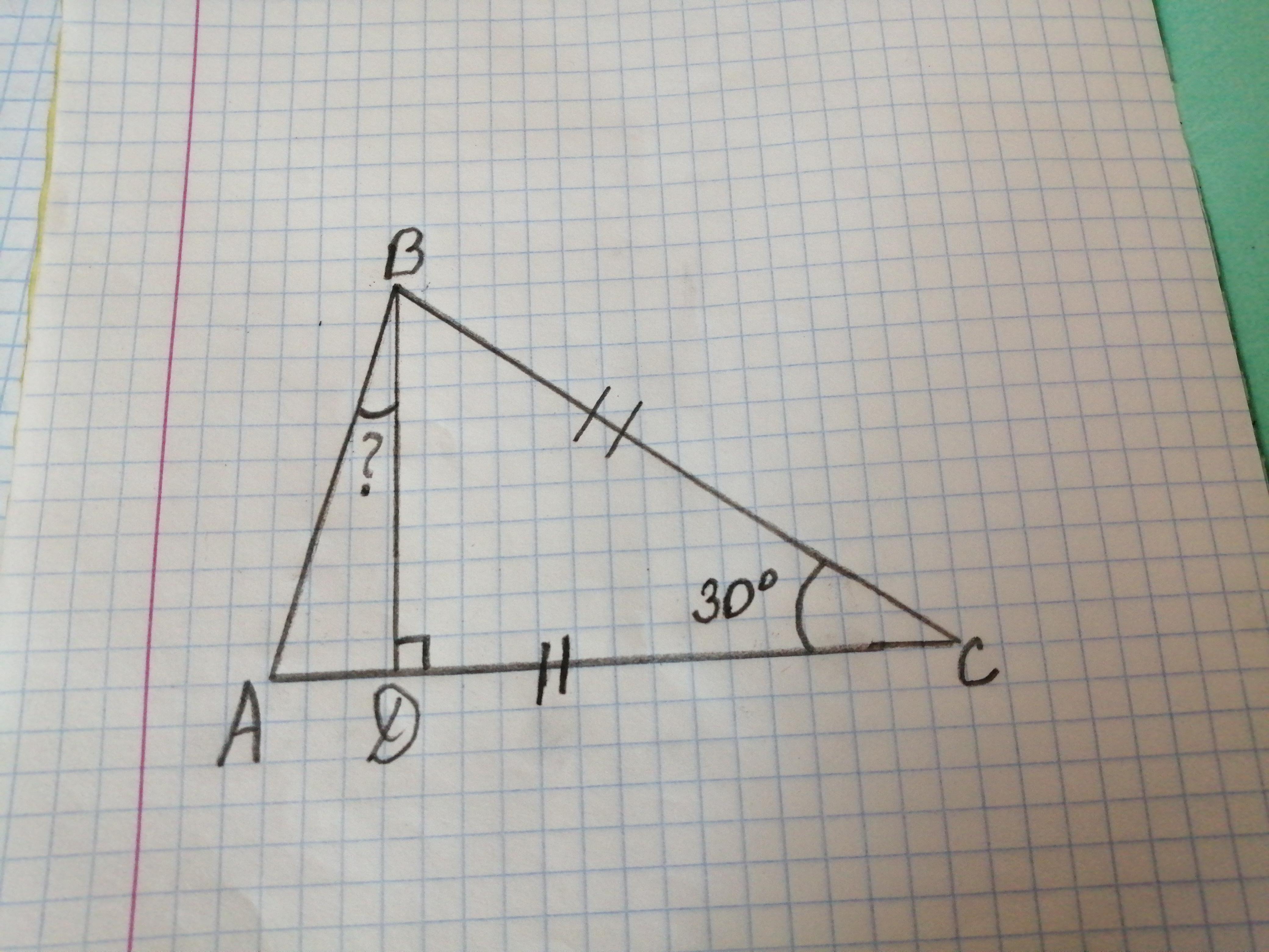 2)ΔАВС-равнобедренный , значит ∠А=∠АВС=(180-30):2=75