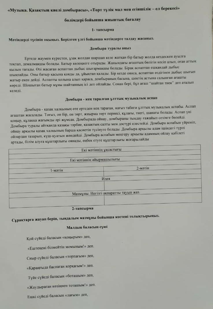 Бірінші мәтінде домбыра туралы аңыз айтылған. Екінші мәтінде домбыра туралы айтылған.