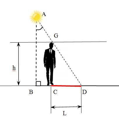 L = h · tg 23,5° ≈ 0,4348 · h