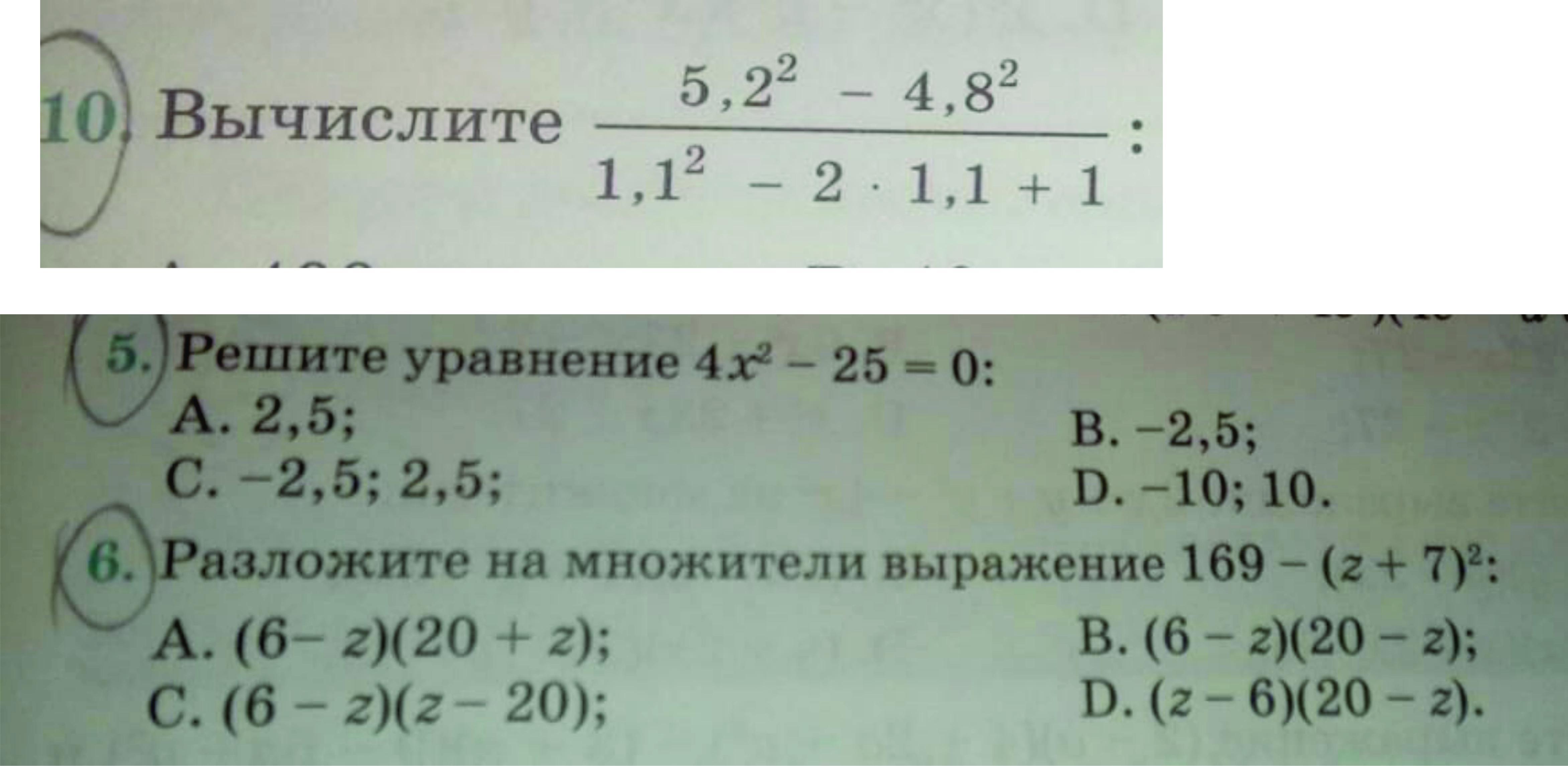 (13 - z - 7) (13 + z + 7) = (6 - z) (20 + z) Ответ А.