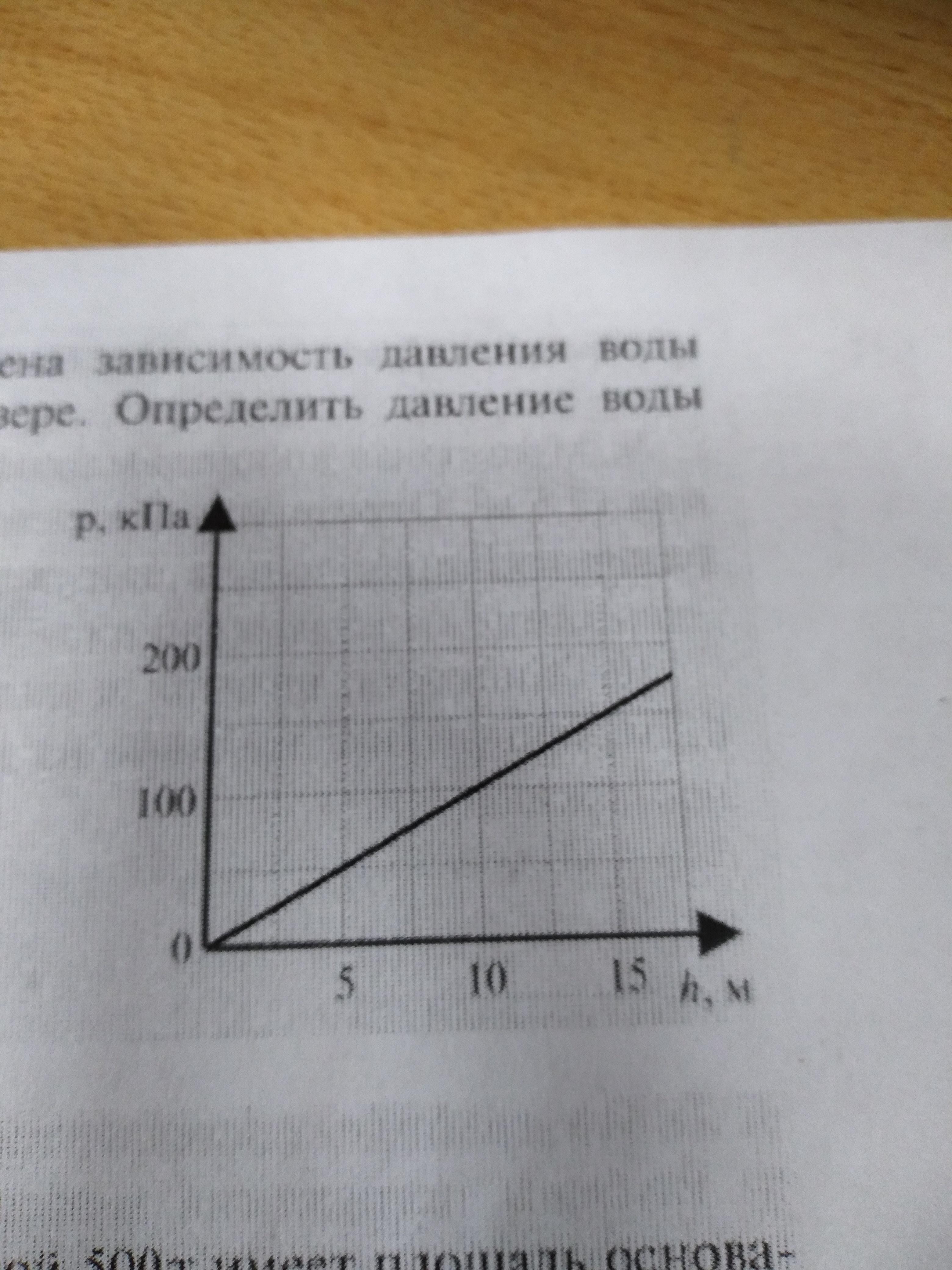 На графике представлена зависимость давления воды от глубины погружения в озере. Определить давление на глубине 25м.