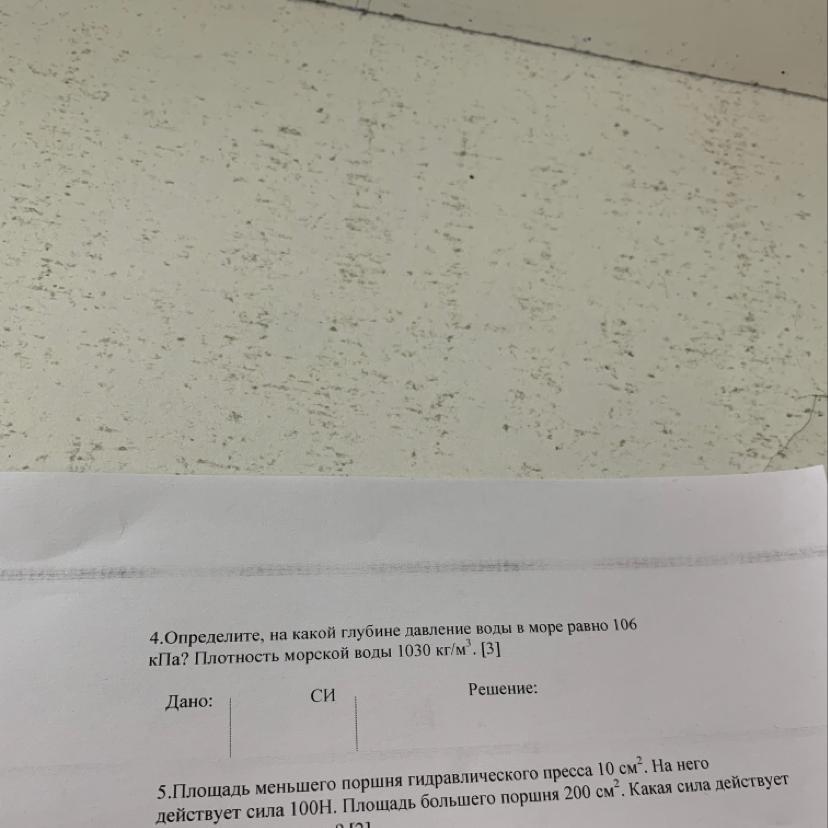 кПа? Плотность морской воды 1030 кг/м. [3]