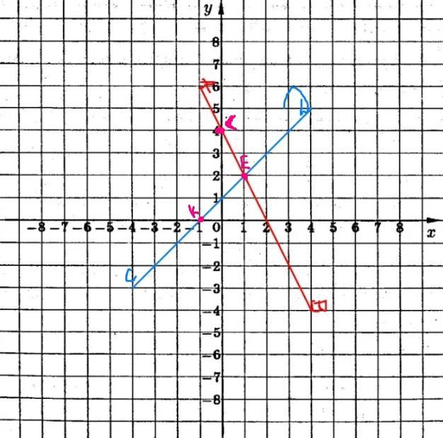 Пошаговое объяснение: Для начала мы находим точки A и B и чертим отрезок AB, потом находим точки C и D и чертим отрезок CD. После ищем координаты точка E, которая считается точкой пересечений отрезков AB и CD. Точка E пересекается в координатах (1;2).