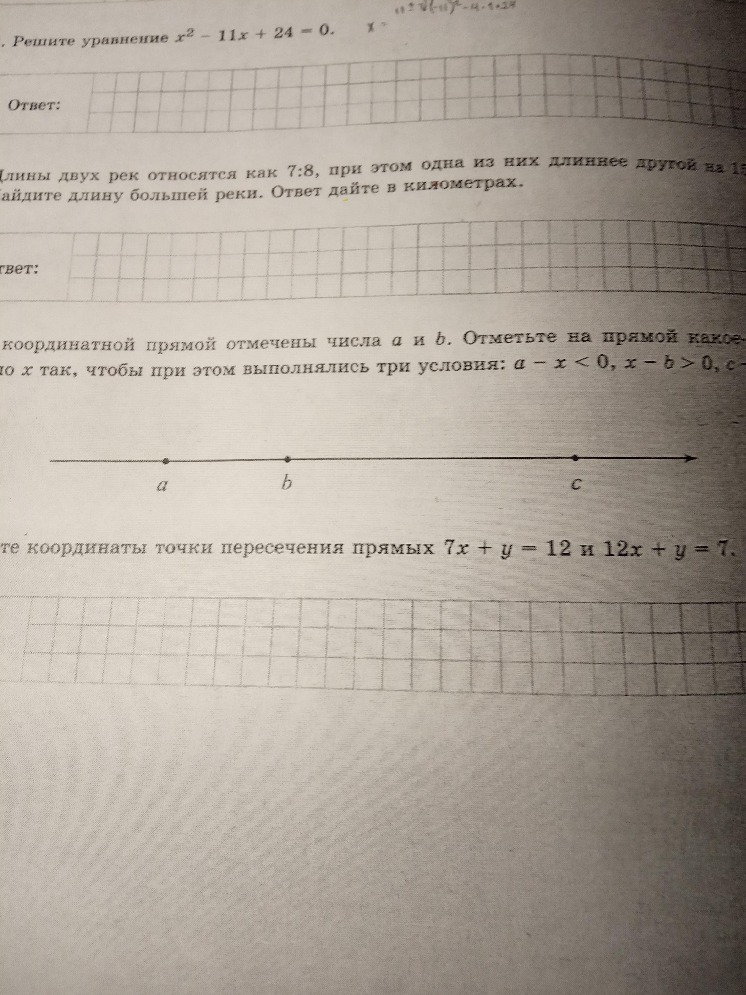 На координатной прямой отмечены числа a и b. Отметьте на прямой точку x так, чтобы при этом выполнялось три условия: