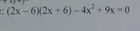 По формуле а^2-b^2 находим, что (2x-6)(2x+6)=4x^2-36-4x^2+9x=0