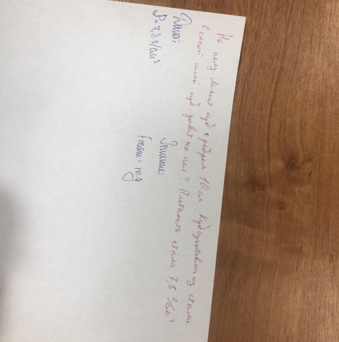 ρ = 7,8 г/см3 =7800 кг/м3 V = 0,1м*0,1м*0,1м= 0.001 м3