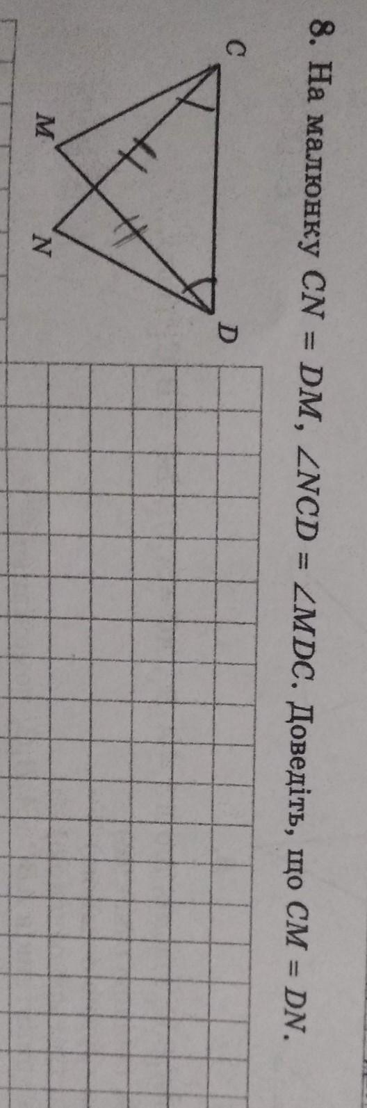 З цього випливає, що ∆DMC= ∆CND(по двох сторонах і кутку між ними) і CM=DN