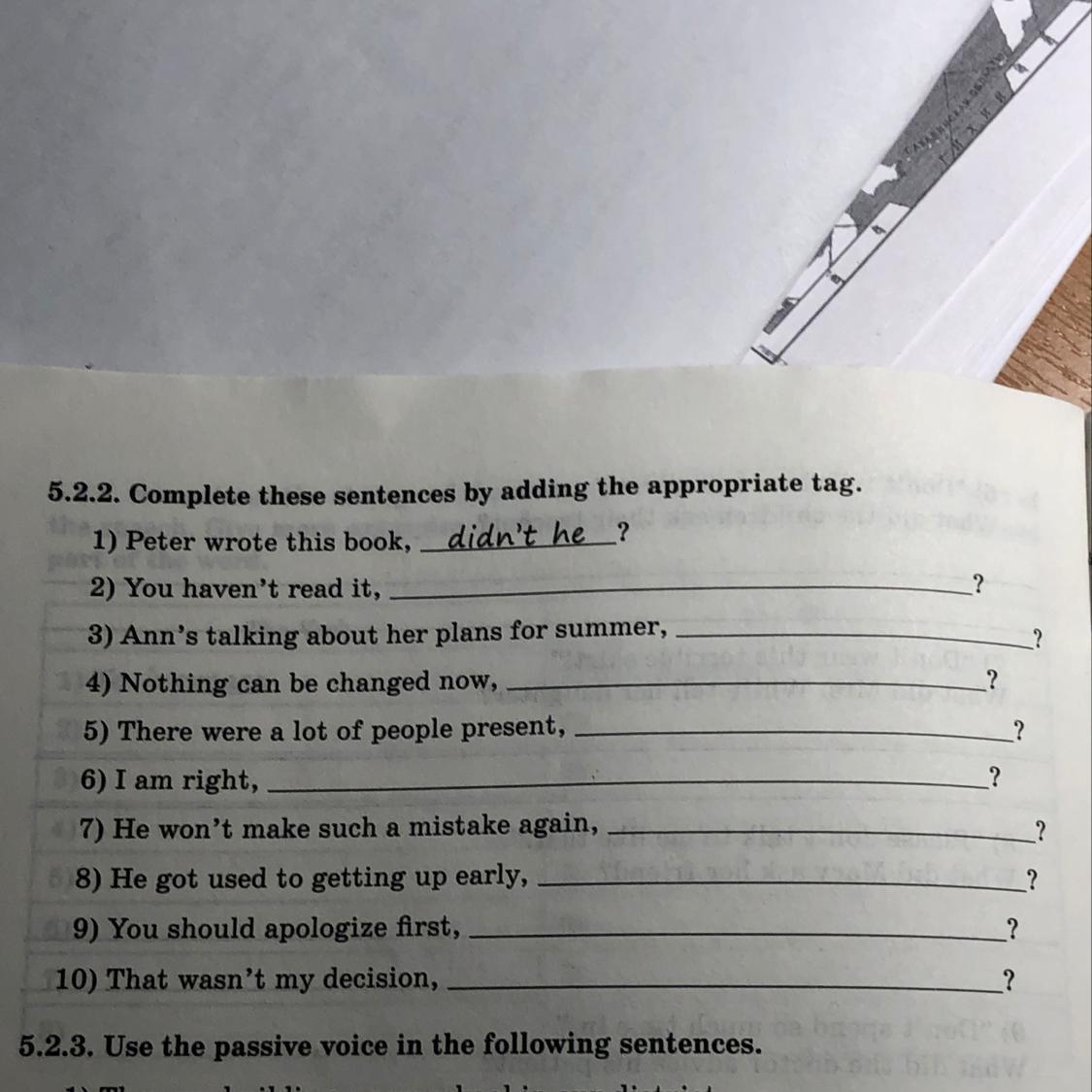 2 have you? 3 isn't she? 4 can it? 5 weren't there? 6 aren't (ain’t) I? 7 will he?
