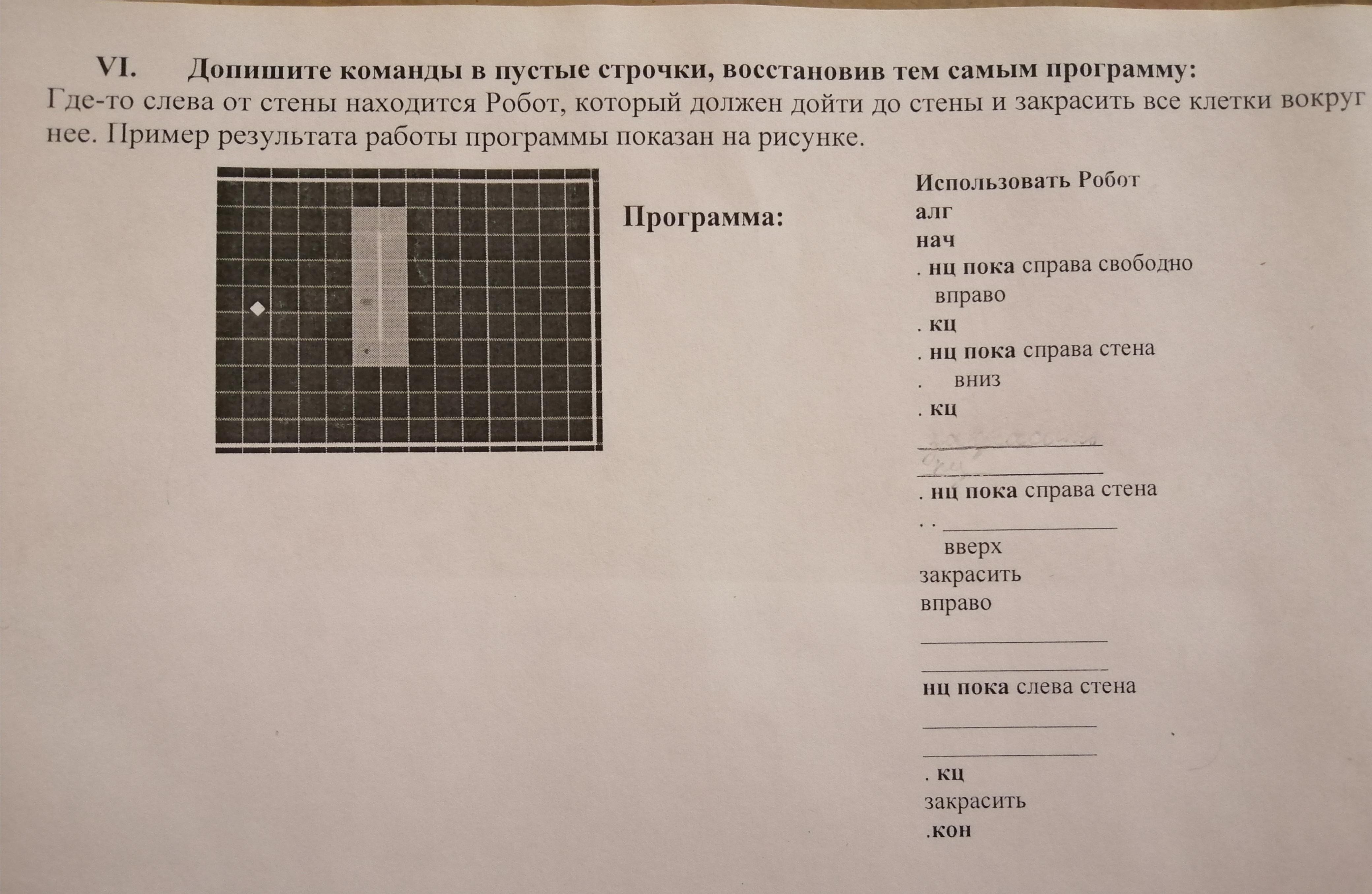 Допишите команды в пустые строчки, восстановив тем самым программу: