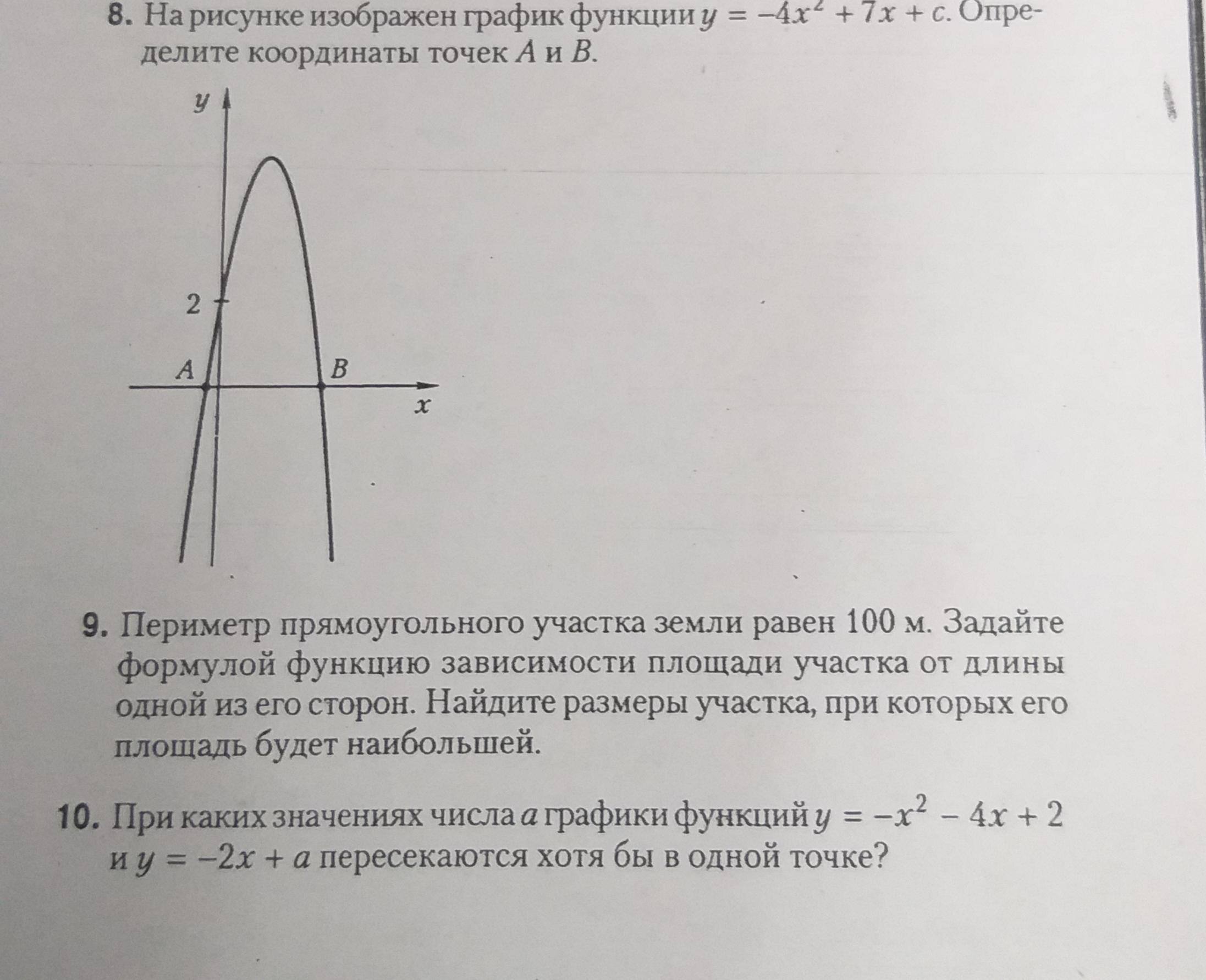 Получили квадратное уравнение: у = -4х² + 7х + 2, ищем корни, это будут точки пересечения графиком оси Х.