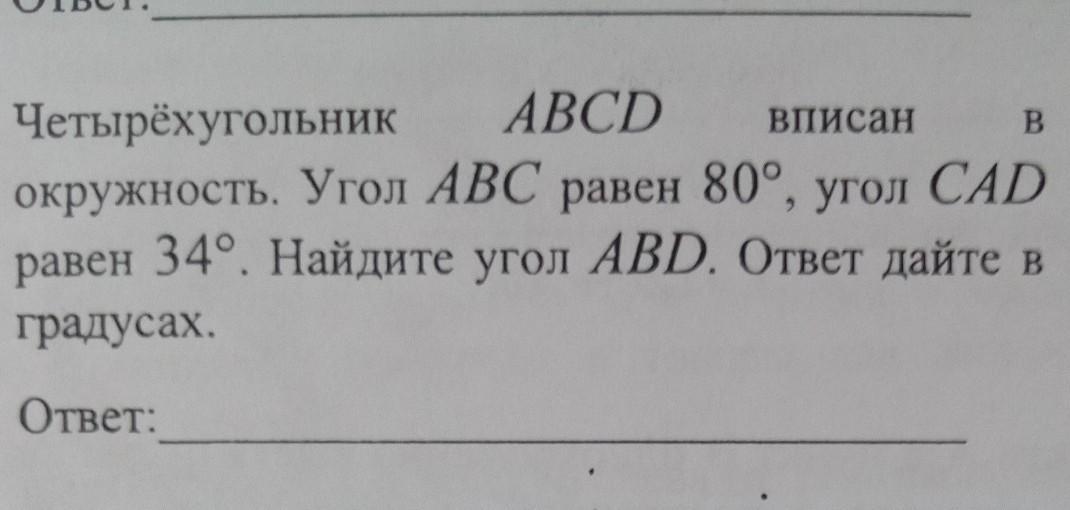 равен 34°. Найдите угол АВD. Ответ дайте в