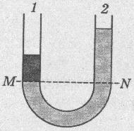 6. В изогнутую стеклянную трубку в одно колено налит спирт, в другое - вода. Одинаково ли давление жидкости в сосудах на уровне MN?
