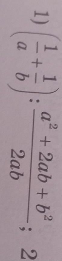 ( frac{1}{a}  +  frac{1}{b} ) div ( frac{ {a}^{2} + 2ab +  {b}^{2}  }{2ab} ) =  \  =  frac{a + b}{ab}  times  frac{2ab}{(a + b)^{2} } =  frac{2}{a + b}