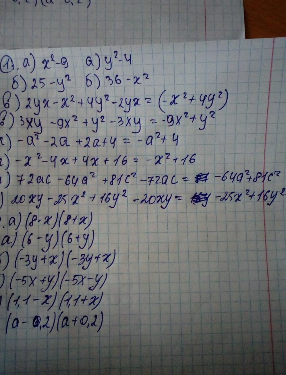 в)1,21-х²=(1,1-х)(1,1+х) б)а²-0,04=(а-0,2)(а+0,2)