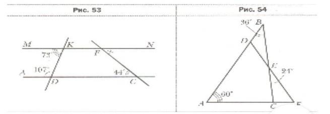 № 3. Какова градусная мера угла F, изображённого на рисунке 54?